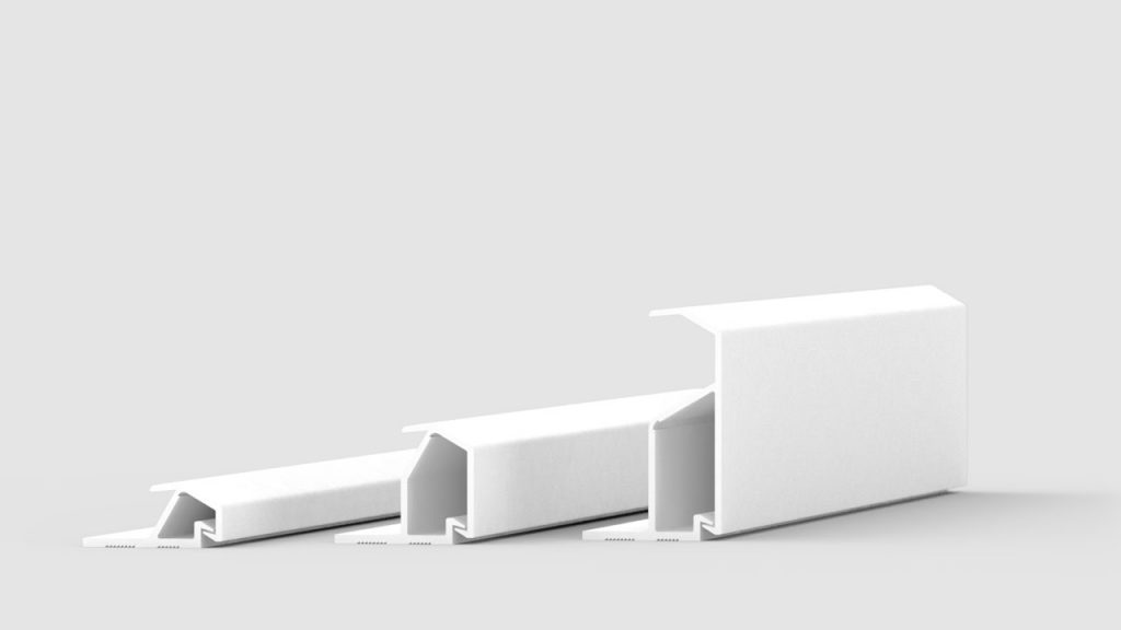 Fabrix™ Side Snap Bevel Edge features a sloped profile for seamless terminations while maintaining a secure hold. The side-mounted snap-fit mechanism grips the acoustic fabric tightly, preventing warping and slippage. Anti-warp and anti-slip enhancements provide long-term fabric stability.